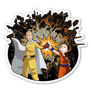 Caricature de One puch man et Dragon ball signé Squareshop. Ce Stickers habillera avec classe votre ordinateur portable ou votre frigo.