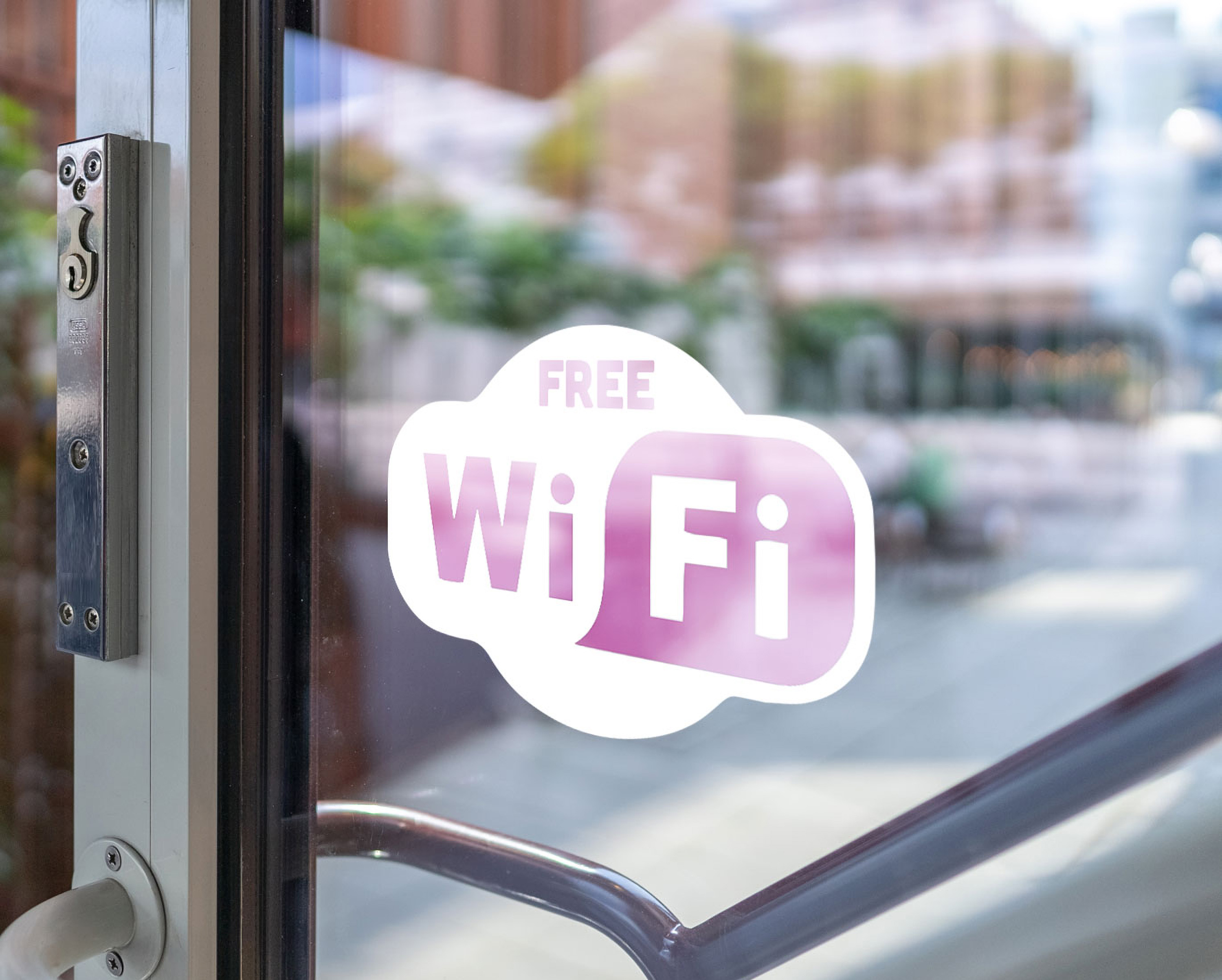 Spiegelverkehrt gedruckt, zum Anbringen innen am Fenster. Sauber, klar und ideal für Schaufenster oder Autos. Innen geklebt, außen sichtbar.