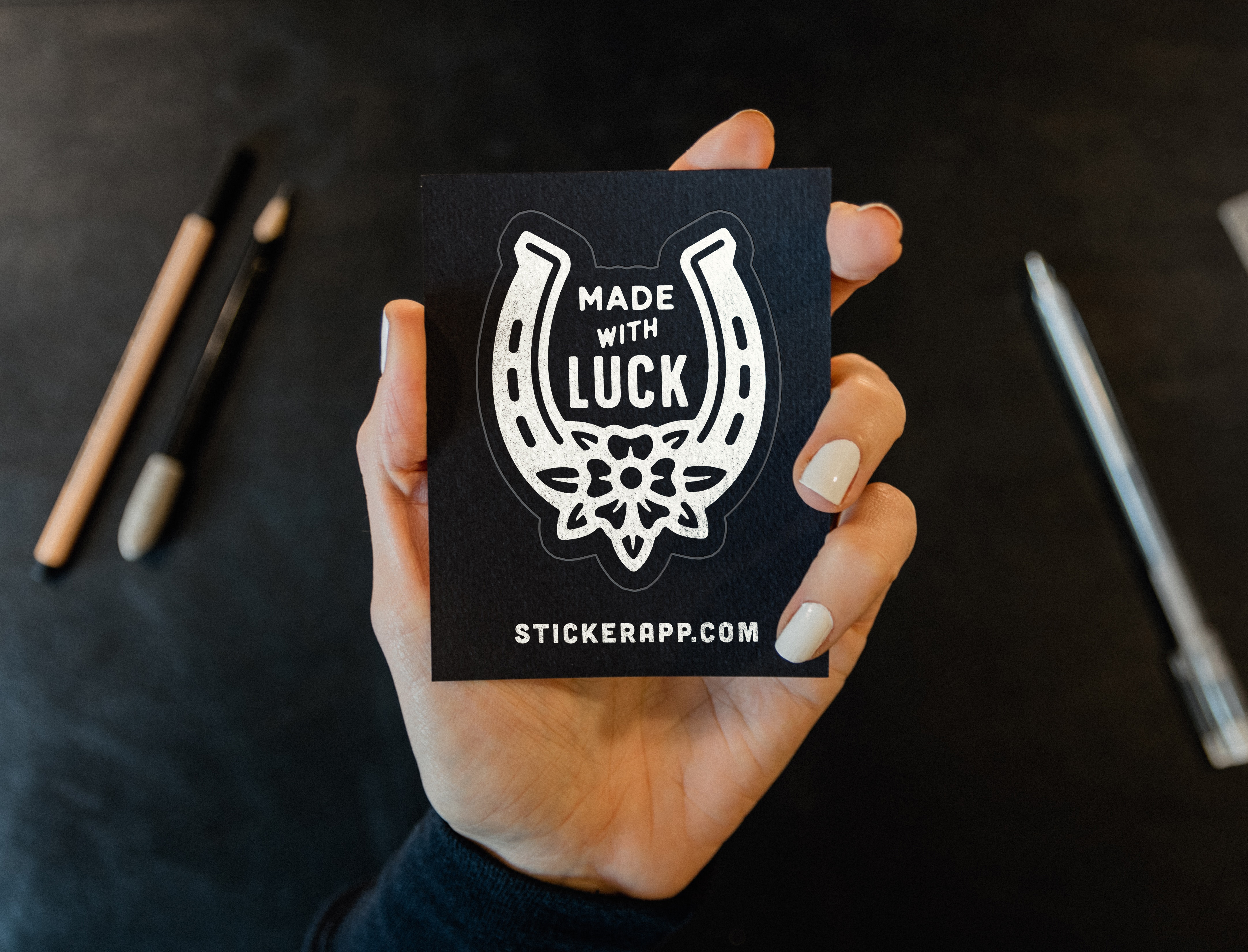 Kiss Cut Sticker sind einzelne Sticker, die einfach abziehbar sind und an den Seiten etwas extra Platz um dein Design haben. Der Vorteil dabei? Du kannst Sticker mit komplizierten Schnittlinien erstellen, aber auch Designs oder Texte hinzufügen, die auf dem Bereich um deinen Sticker herum Platz finden. Das ist eine großartige Option für Kreationen wie Logo-Sticker. Platziere deine Geschäftskontaktdaten, Social-Media-Links oder Öffnungszeiten auf dem zusätzlichen Rand um deinen Sticker.
