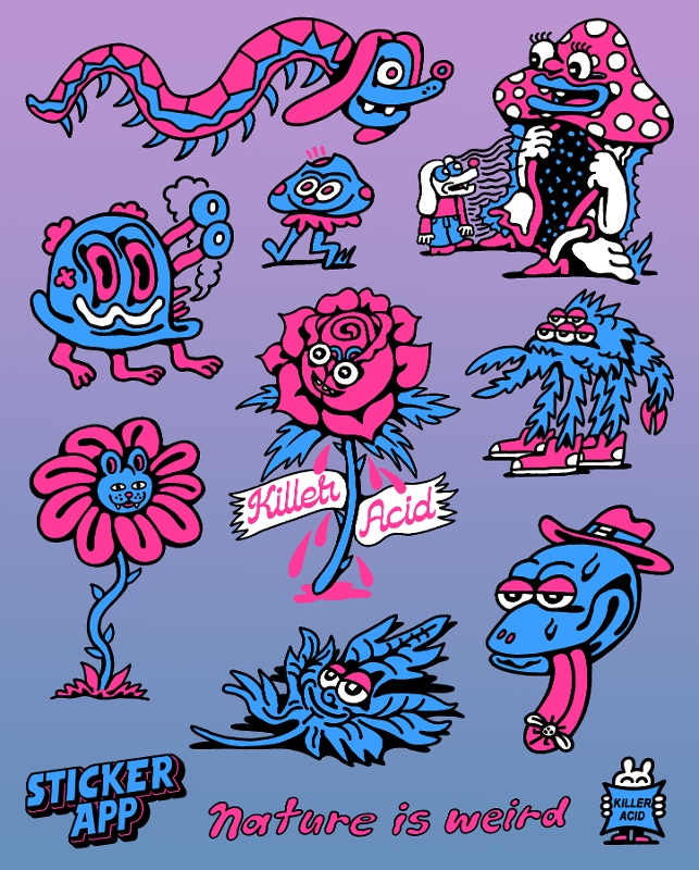 Killer Acid: I’m obsessed with stickers. We sell stickers directly to our customers and include minis for free in every order.