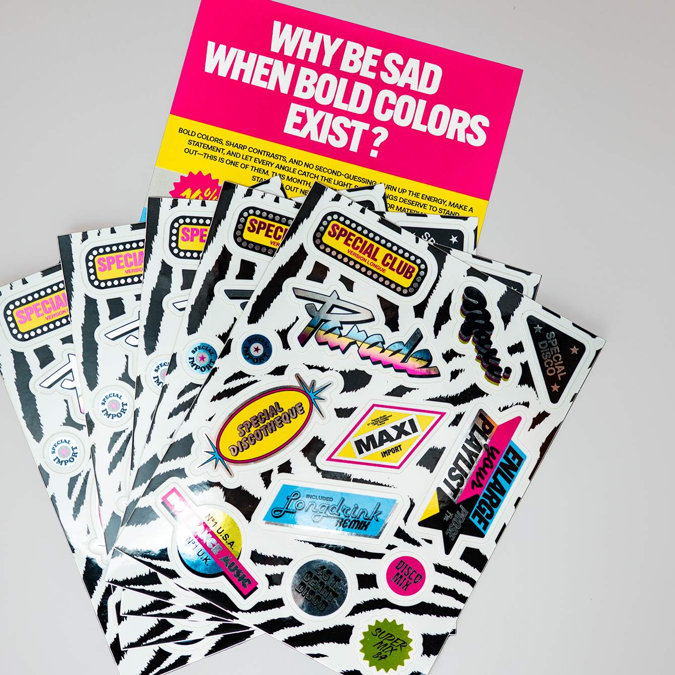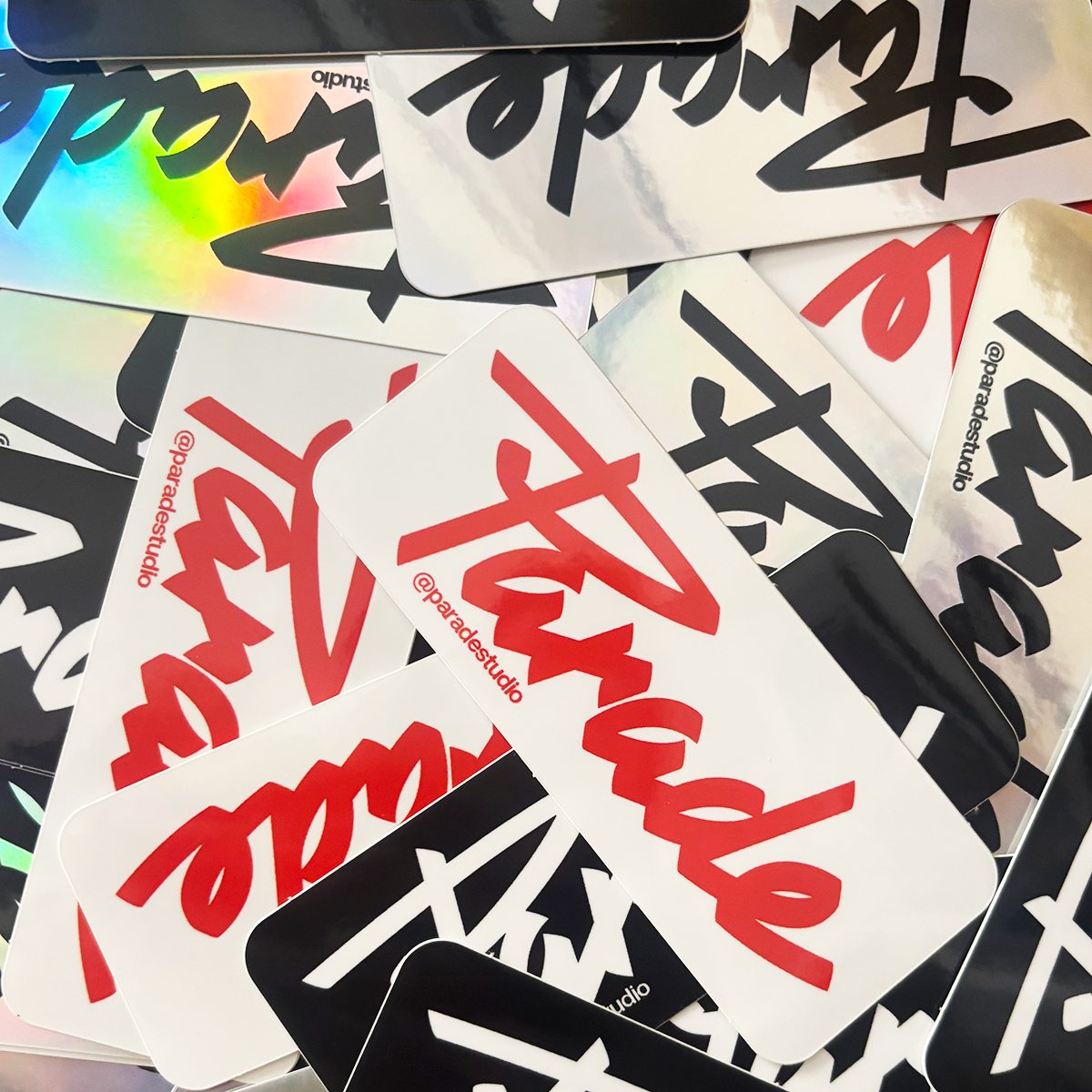 Parade: I love creating and I have tons of projects alongside my studio and radio work. Stickers are timeless—I carry them everywhere, at all times, stick them anywhere, and hand them out to friends.