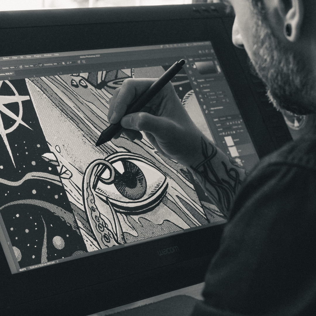 Pedro: To cut a long story short, I've been drawing since I was a child and after finishing high school I started a graphic design degree in 2005 where I was able to acquire technique and repertoire. I worked as a graphic designer and illustrator for about 5 years and since 2014 I have dedicated myself entirely to illustration.