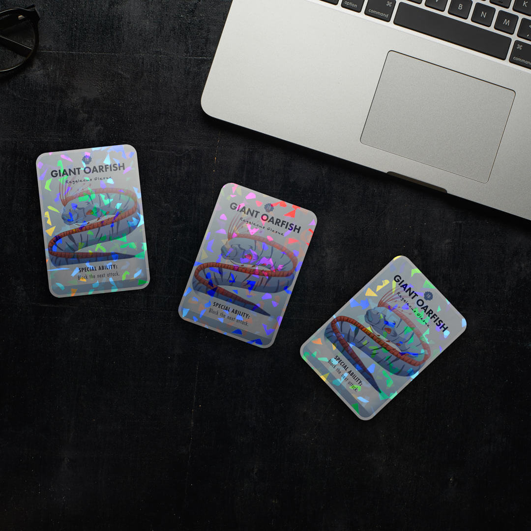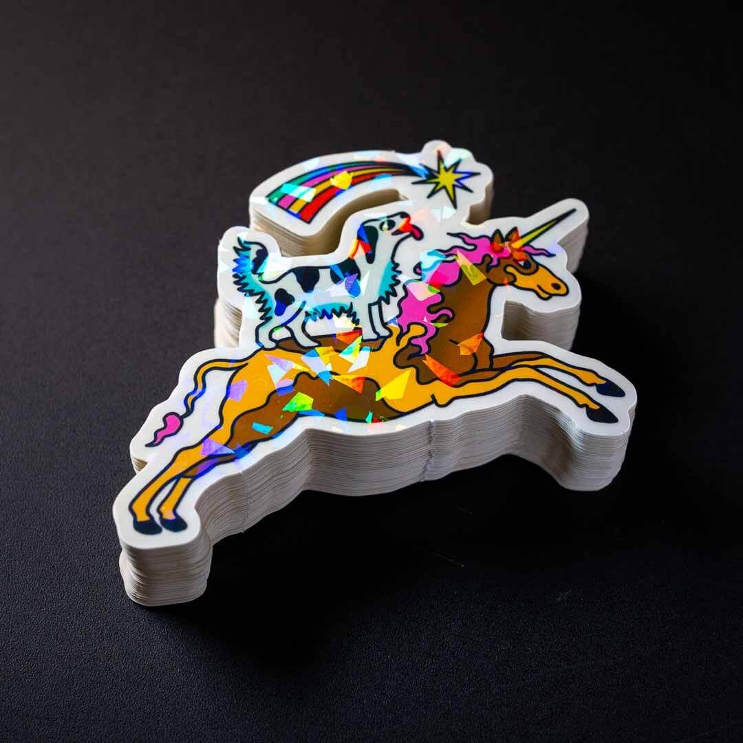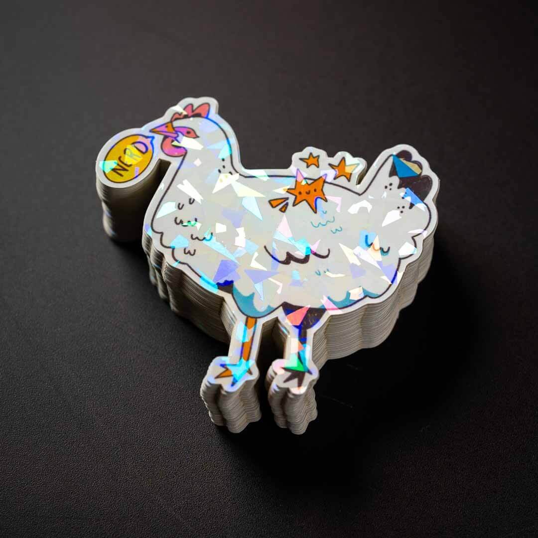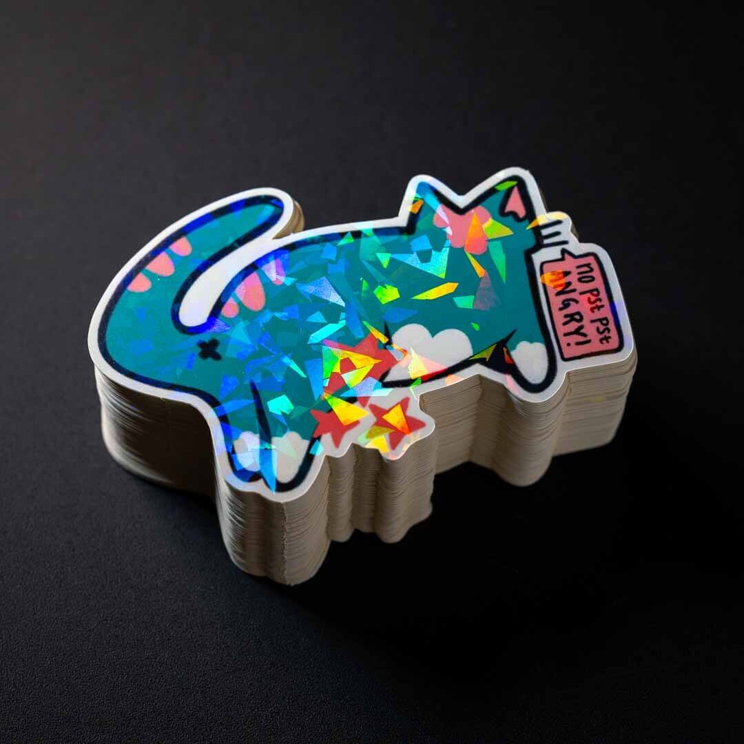 Unsere „Cracked Ice“-Hologrammfolie verleiht Ihren Stickern einen schimmernden Glanz, der auf Ihren gesamten Aufkleber aufgebracht werden kann.