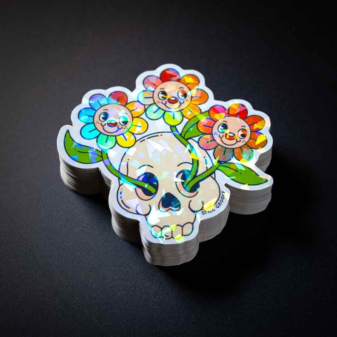 Sieht toll aus auf transparenten Aufklebern. Angebracht auf einem Spiegel oder Fenster bricht diese Beschichtung das Licht und glitzert in atemberaubenden Farben – fast wie ein Suncatcher Aufkleber.