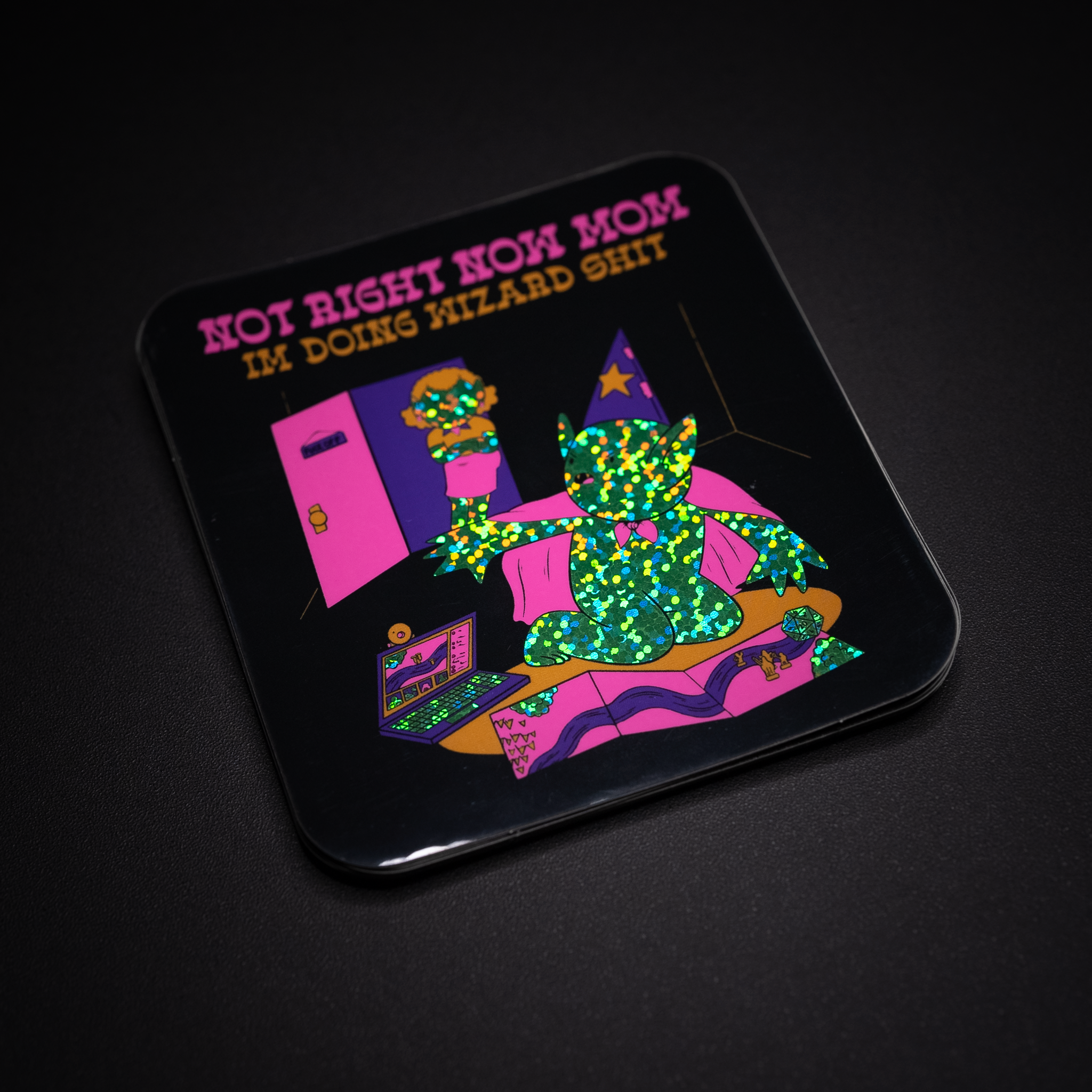 Neon pink ink auf holografischen Aufklebern