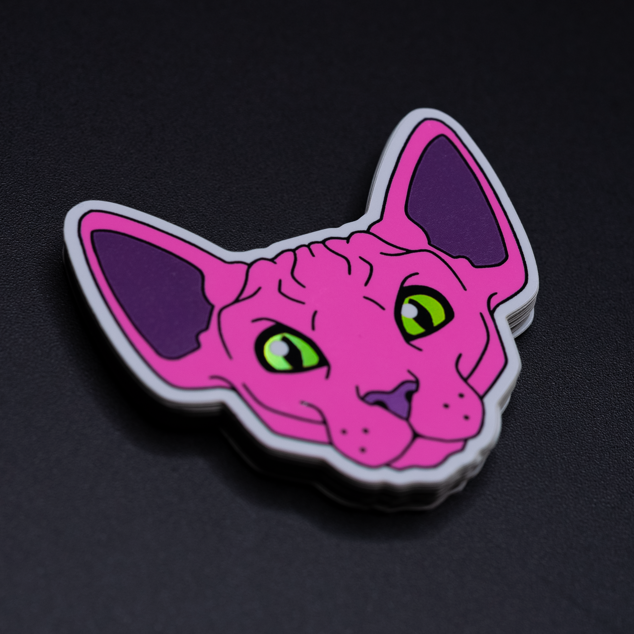 Du hast es genau verstanden! Du möchtest einen holografischen Aufkleber mit flachen, neonpinken Details? Kein Problem. Wir können jedes unserer Materialien mit Neonpink bedrucken, damit deine Kreation richtig auffällt.