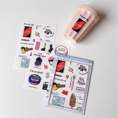 Ich bin total besessen von Stickern, und ich habe das Gefühl, dass meine Arbeit für Sticker gemacht ist. Ich schicke sie an Kunden, verkaufe sie in meinem Online-Shop und gestalte jeden phy- sischen Kontaktpunkt mit bunten Stickern