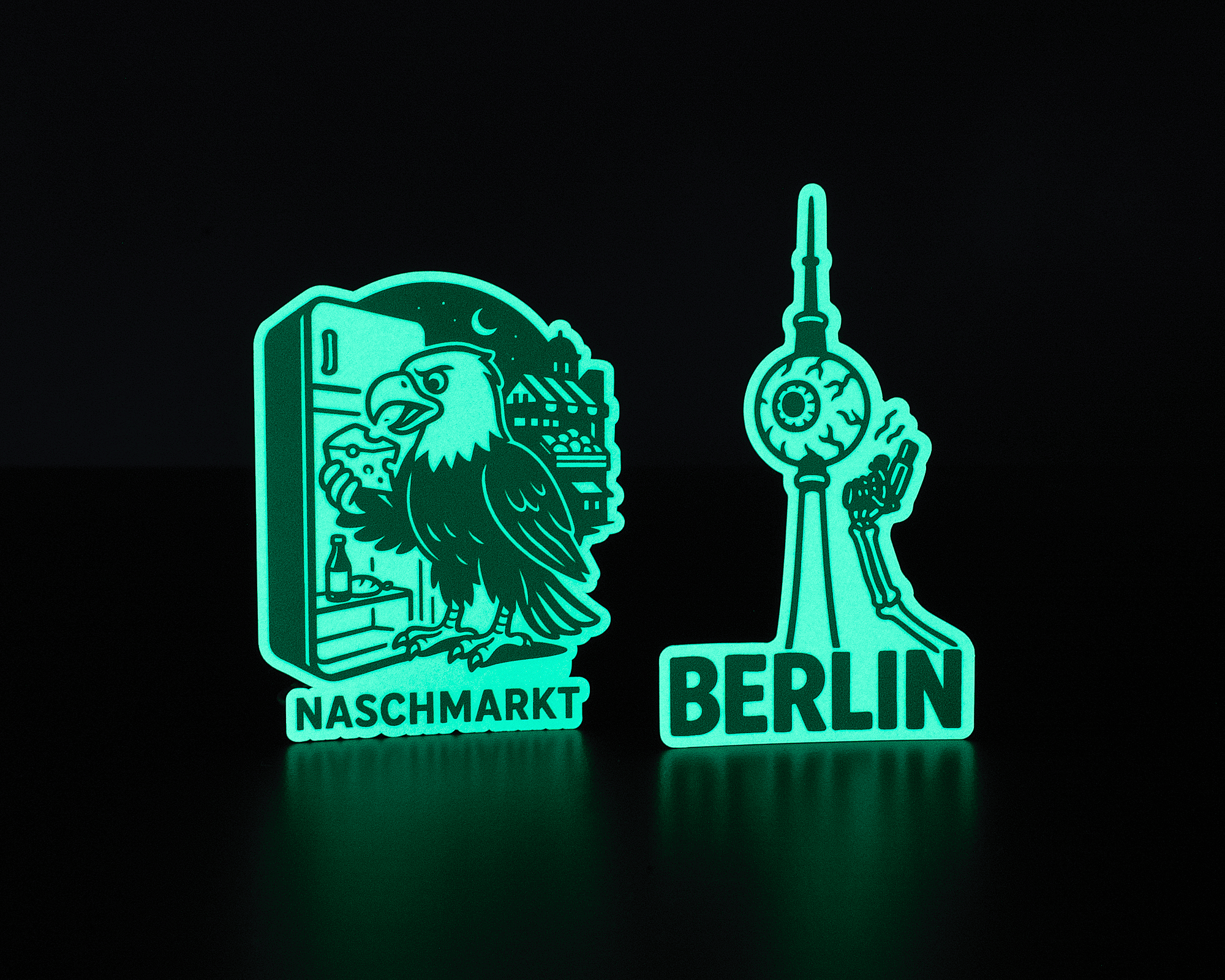 Lädt sich bei Tageslicht auf, leuchtet im Dunkeln. Ideal für verspielte Designs, Nachtsicht oder ein bisschen Sticker-Magie. Bring Licht ins Dunkel – oder tu zumindest so.