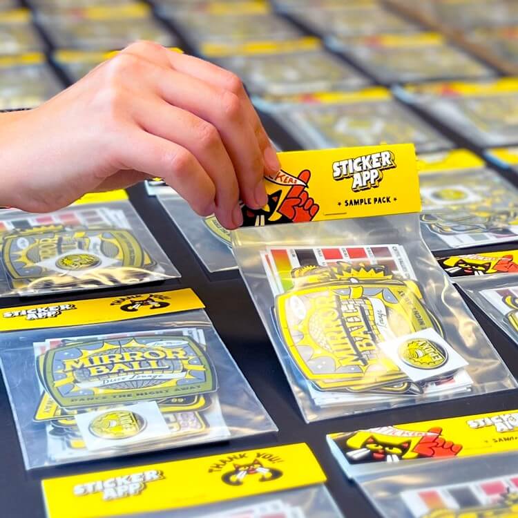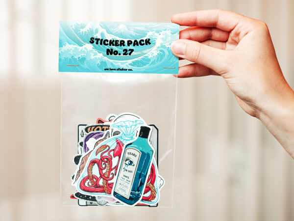 Der Preis umfasst das Verpacken deiner Sticker in einzelne Tüten und das Hinzufügen einer optionalen Headerkarte. Die Mindestbestellung liegt bei 100 Paketen.