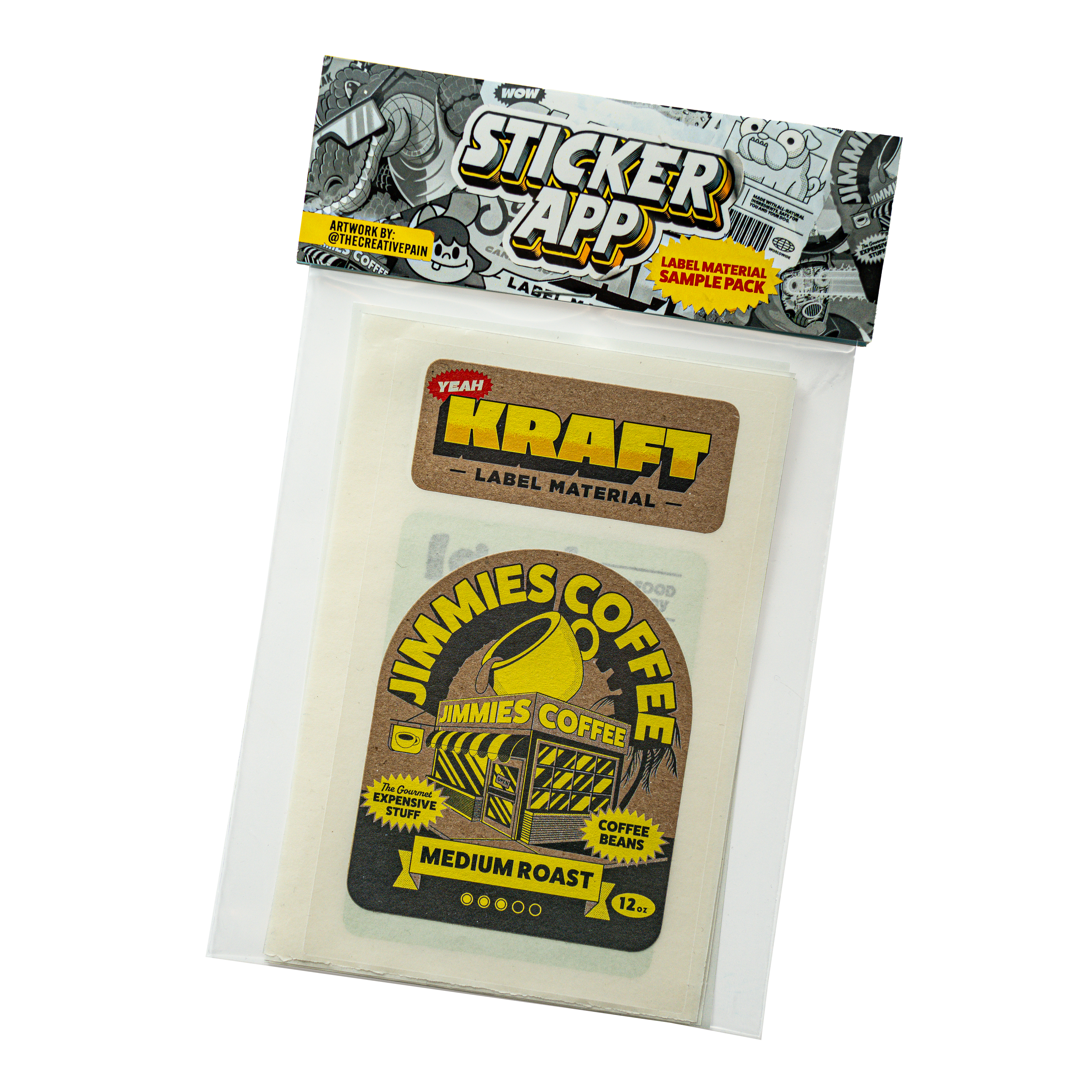Willst du wissen, was es mit StickerApp auf sich hat? Dies ist dein Starter-Kit. Wir sprechen hier von echten Materialien, echten Druckmustern und einem Platz in der ersten Reihe, um alle Möglichkeiten für Etiketten kennenzulernen. Betrachte es als eine praktische Einführung in deinen zukünftigen Lieblingsetikettenlieferanten.