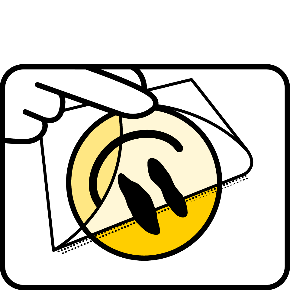 Ziehe den Film seitlich ab, um dein Meisterwerk freizulegen. Befolge Pflegetipps, um es frisch aussehen zu lassen.