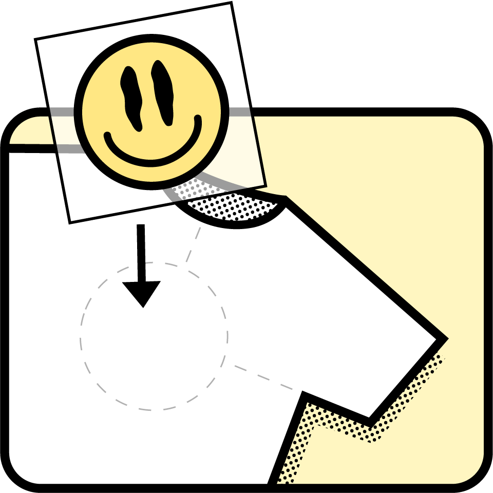 Für beste Ergebnisse verwende eine Heißpresse bei 150°C mit mittlerem Druck für 10–30 Sekunden. Wenn du ein Bügeleisen verwendest, das besser für kleinere Designs geeignet ist, trage 150–200°C mit festem, gleichmäßigem Druck und langsamen Bewegungen für 60 Sekunden auf. Passe Zeit und Temperatur für hitzeempfindliche Materialien an.